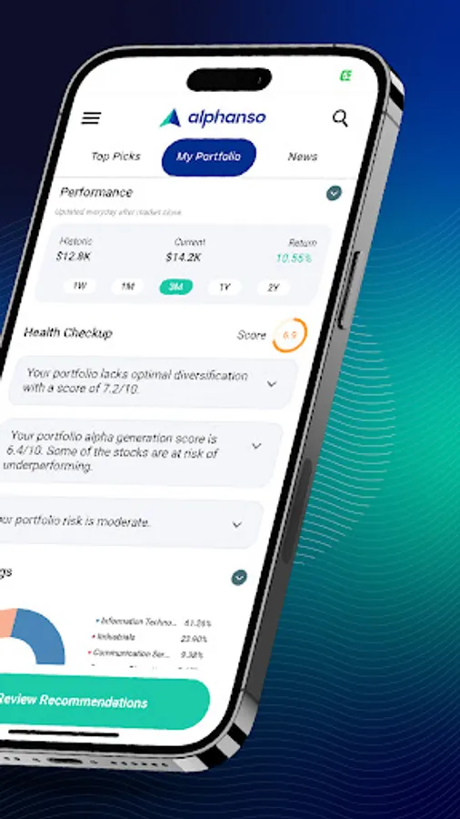 - Review buy & sell recommendations by Alphanso’s AI to build an optimal portfolio