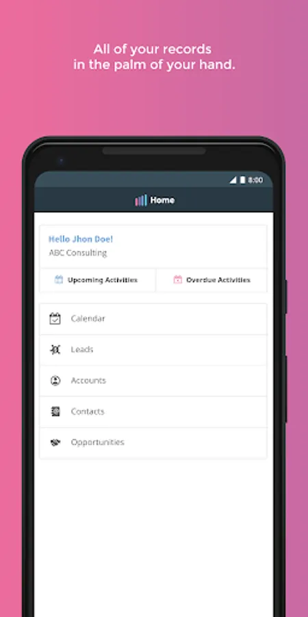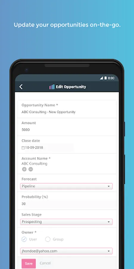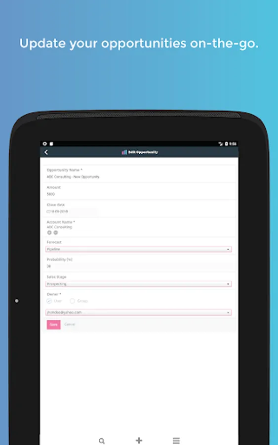 • Access & update Leads, Contact, Account, & Opportunity records from any device and any location