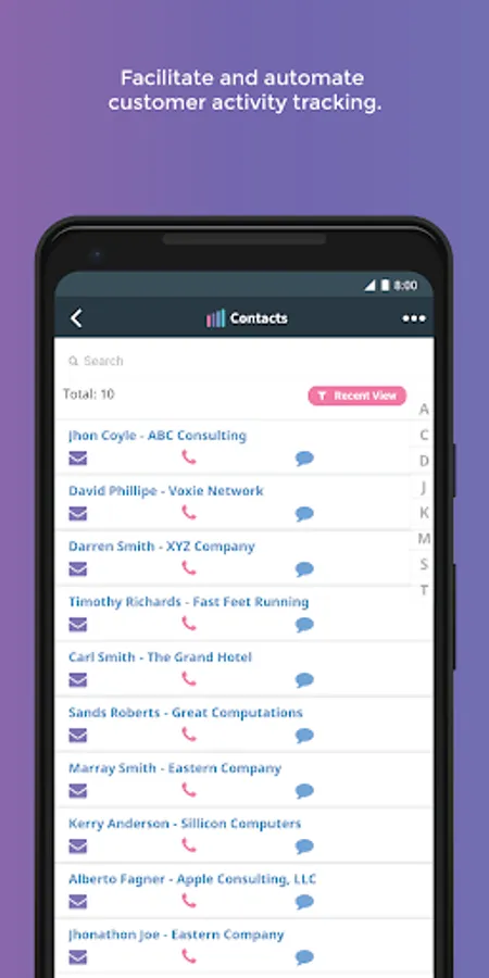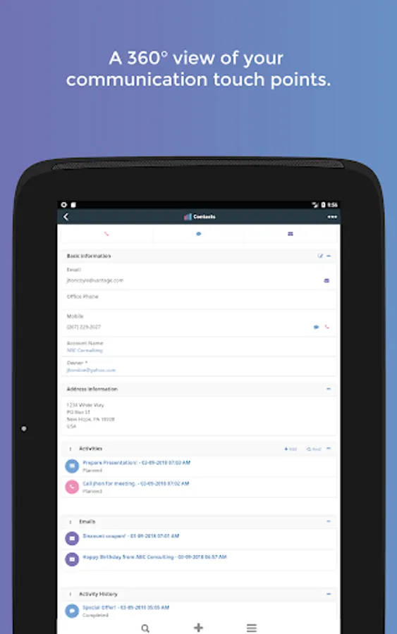 • One-touch communication buttons to initiate and log Call, Email and SMS activities