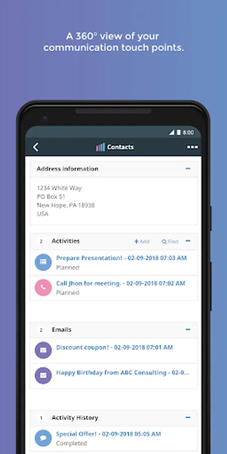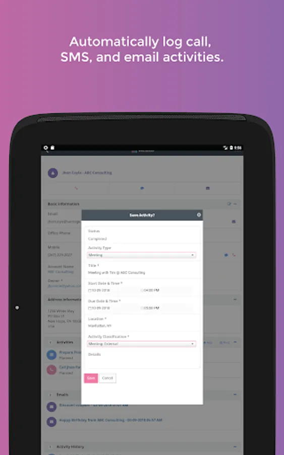 1. It saves time and improves account logging accuracy by automatically logging all calls, emails and SMS communication activities