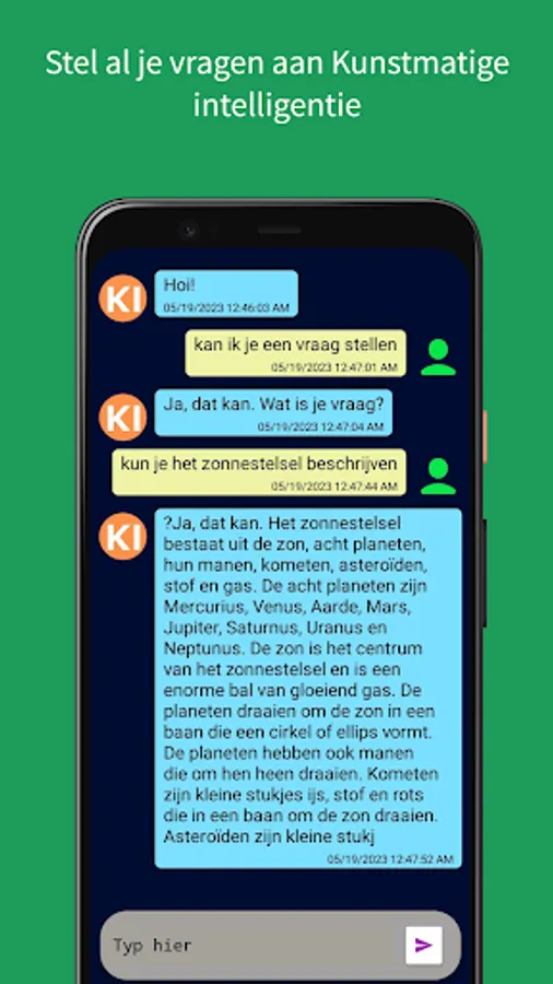 Discover KI Artificial Intelligence - the Dutch app that puts the power of AI in your hands. Artificial intelligence can make your life easier and more creative, thanks to its advanced technology and unparalleled functionality. Whether you want to simplify your daily tasks, change the way you interact with the world, or just try something new, this app is the ultimate tool for anyone who wants to be ahead of the game. Lifetime unlimited professional AI tasks by AI. What are you waiting for? Join the AI revolution with artificial intelligence today!