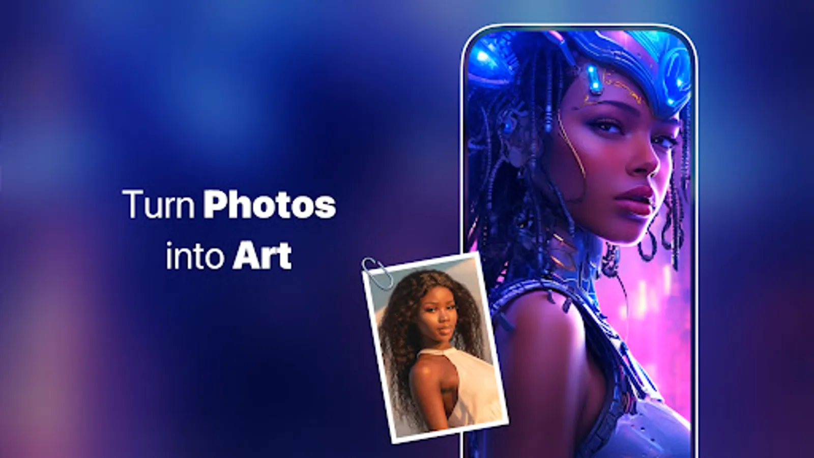 AI art generator can turn your photos into stunning works of art with thousands of possible styles. Simply upload a photo or choose one from your gallery, and our AI generator will do the rest! Surprise your friends with never-seen-before content with the innovative technology of AI. Want to transform into your favorite superhero? No problem! Want your cat dressed up as an astronaut and fly to Mars? It's just one click away.