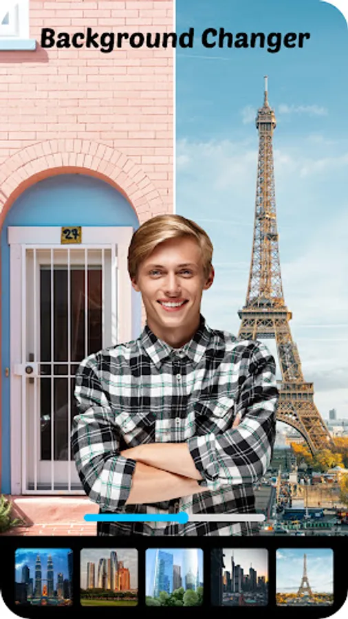 ✓ Background Changer replaces the original background with a new one of your choice.