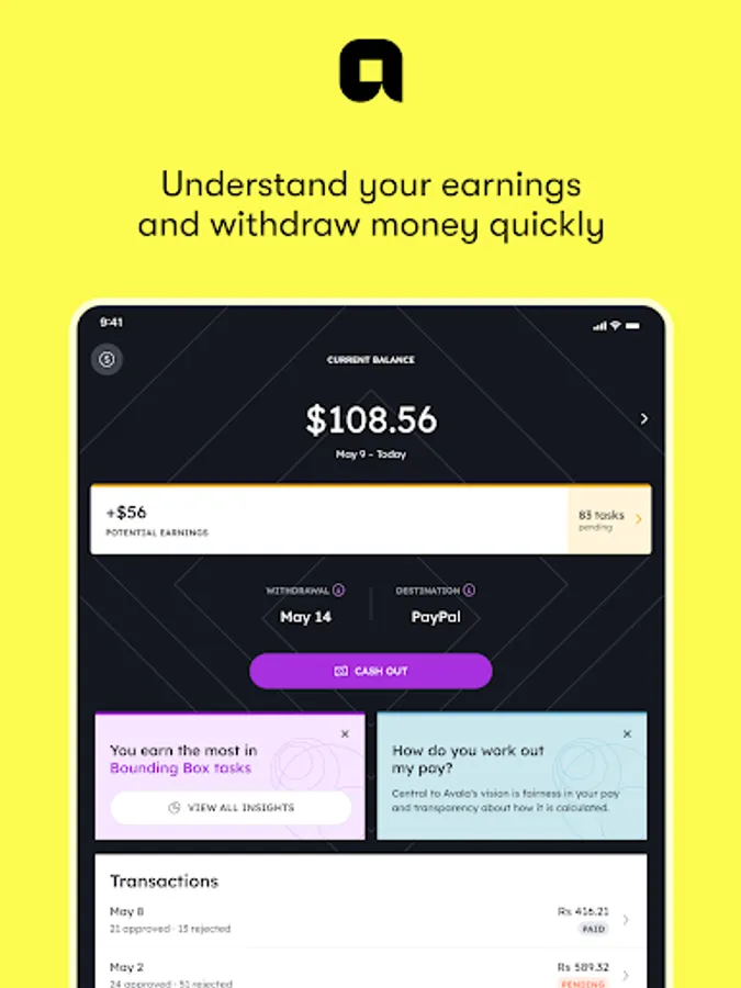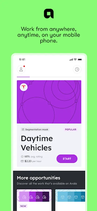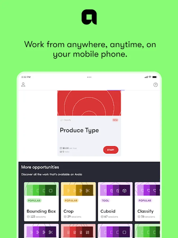 Avala wants to provide everyone with the means to earn a fair wage. A smartphone and a basic internet connection are all you need to work from anywhere, at any time. No fixed hours, no commuting, no stress.