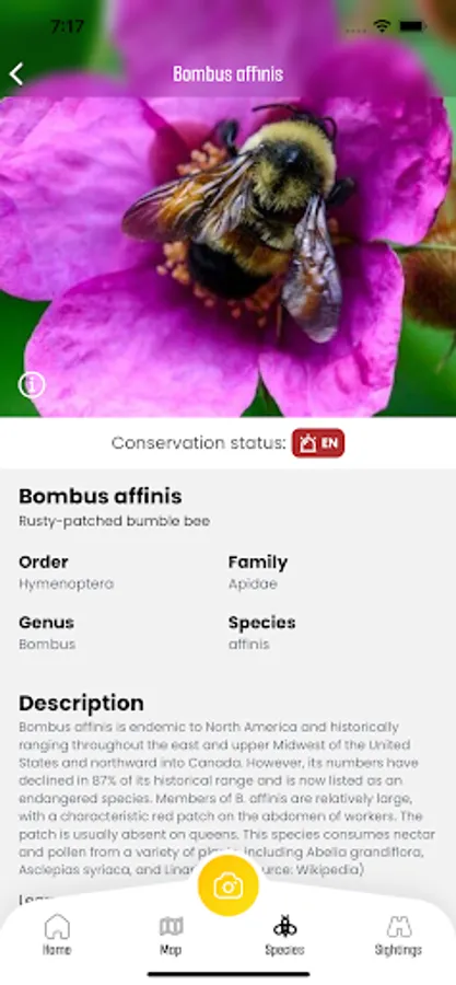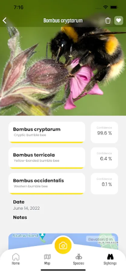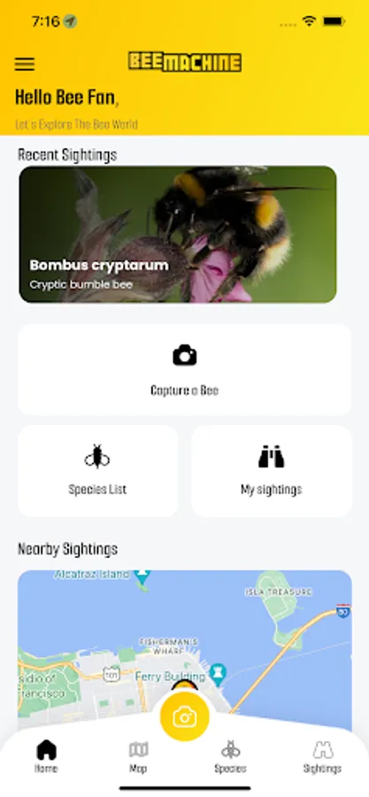 Identify bee species using computer vision. BeeMachine is a free community science app and a fun way to learn about the different bee species in your neighborhood or anywhere your adventures take you. Save your sightings, map them, and explore the diversity of bees. BeeMachine was developed by a small team of scientists and enthusiasts to provide expert-level identification skills for all. Your sightings will help scientists understand trends in bee populations and help us conserve these essential pollinators.