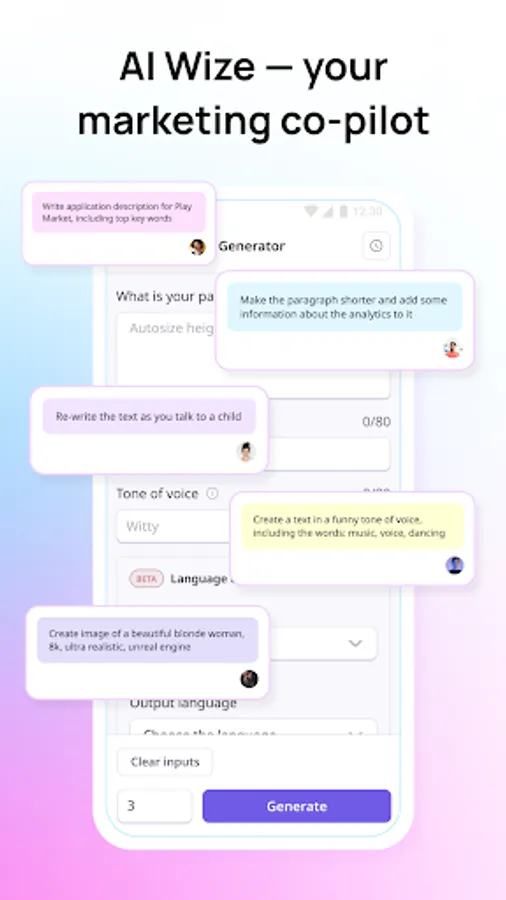 Whether you need to automate marketing, quickly create unique text, generate ideas instantly, improve social media, or create or maintain a brand voice, our app can help you. Download AI Wize and experience the future of AI-driven productivity!