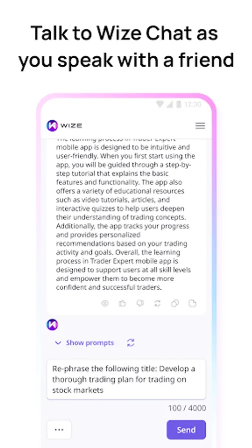 - Chatbot with advanced artificial intelligence: Participate in interactive conversations with AI Wize