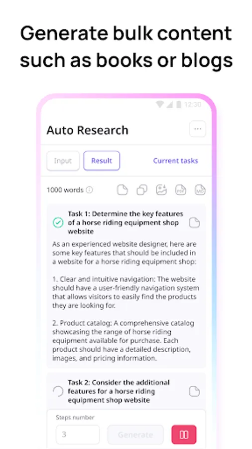 - Creating posts, texts, content, scripts, headlines, e-mails in just a couple of clicks