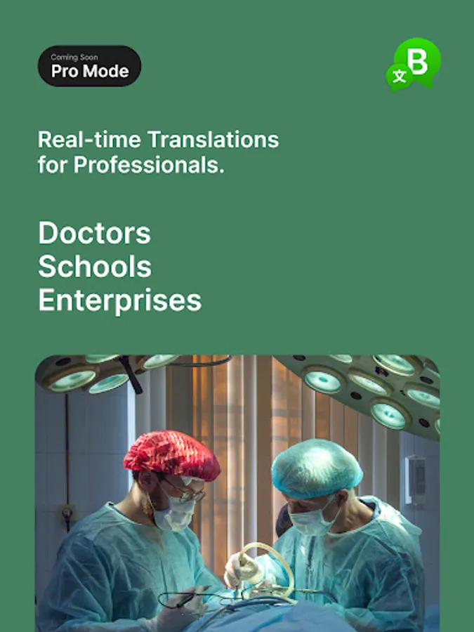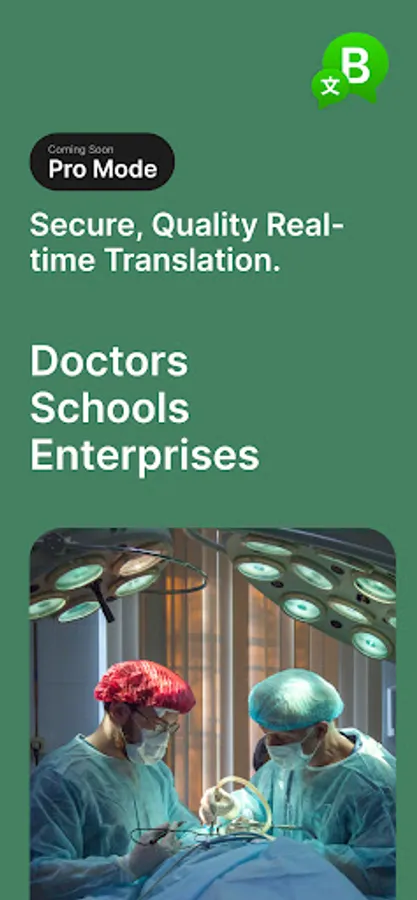 Contact us for Professional Mode or business translation APIs: Higher Quality and Secure Encryption for Doctors, Schools, and Enterprises.