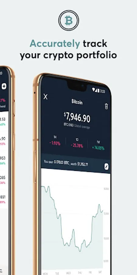 * Convert your portfolio into multiple fiat or crypto bases currencies, including USD, EUR, JPY, GBP, AUD, CAD, CNY, and BTC.