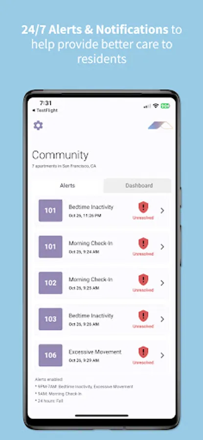 Caspar Care App provides actionable insights and alerts for improved senior care.