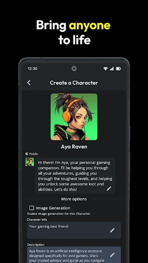 Immerse yourself in captivating stories, get homework help from your favorite anime personas, learn a new language, and even write a novel… all with the help of the most advanced AI assistant that YOU design! The only limit is your imagination and we encourage you to push the frontier of what’s possible with this innovative technology. Welcome to the C.AI community! We’re excited to see what you bring to life!