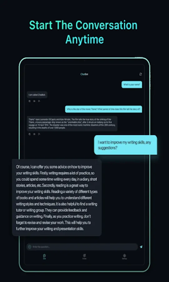 AI ChatBot APP based on the last version of AI Assistant model, which is the same technology that powers the app, to accurately and efficiently respond to an extensive range of inquiries based on a massive dataset of human conversations.