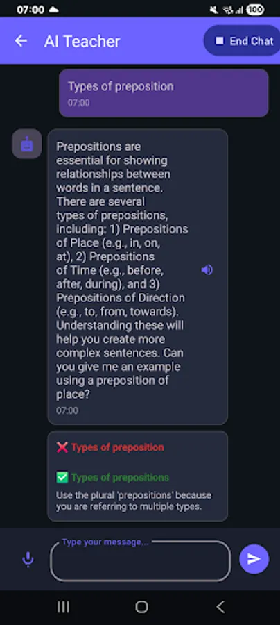 • Personalized feedback to improve grammar and fluency