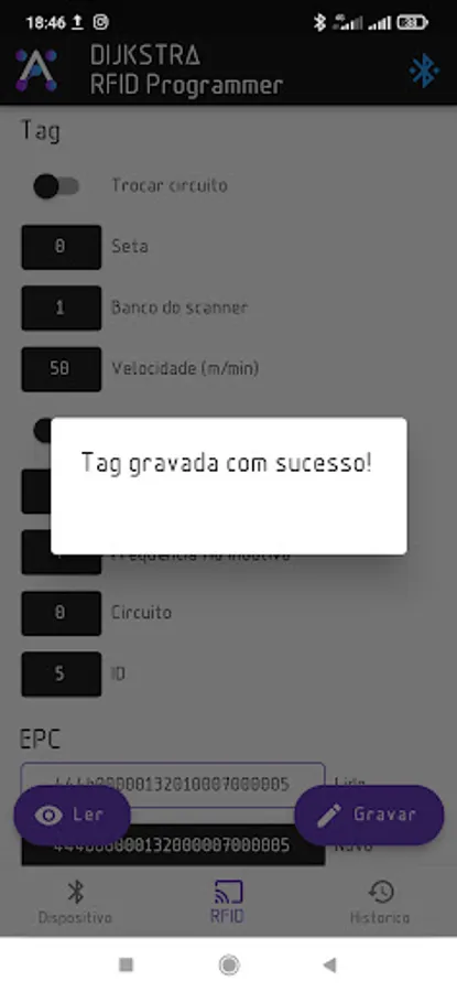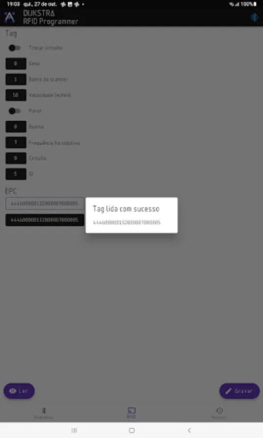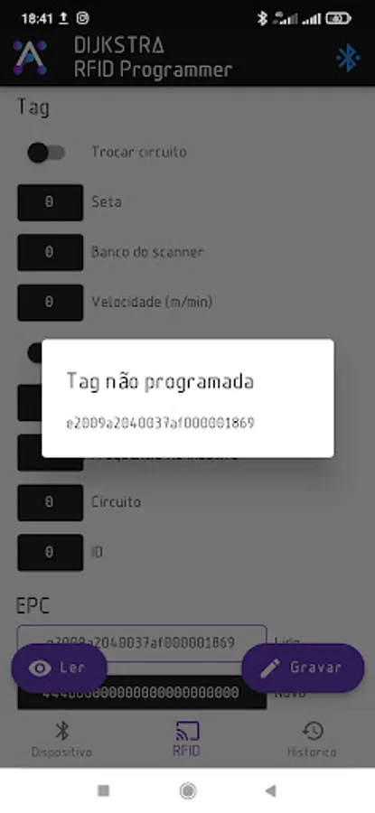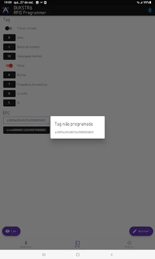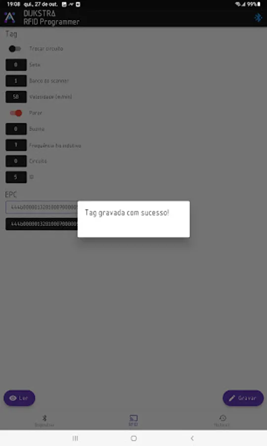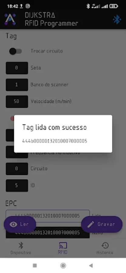Tool that allows you to read and write UHF RFID tags for the AGV Dijkstra. It uses Bluetooth Low Energy communication to communicate with the wireless recorder, through the EPC C1G2 protocol (ISO18000-6C).
