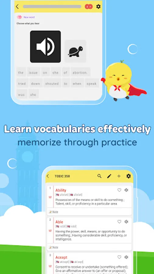 - Double memorization: review English vocabulary through Flashcard, quiz