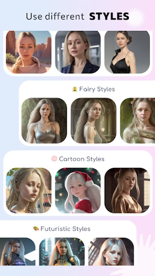 Speed up your photo editing with a powerful AI to see yourself in many different styles, epic images of you, and beautiful portraits.