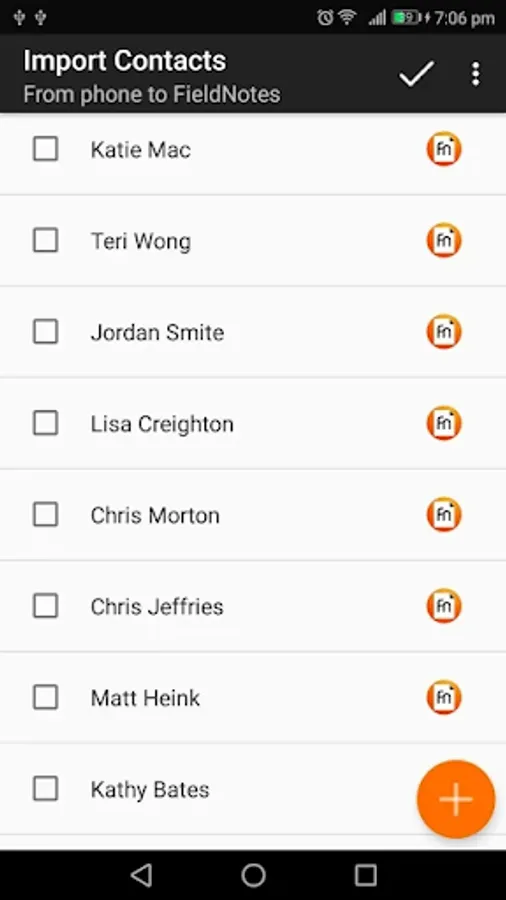 Enable permissions of READ_CONTACTS to allow automatic syncing of your phone contacts to FieldNotes and vice versa