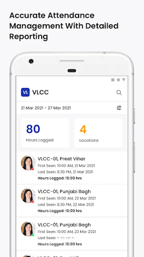 4) Dashboard to visualize daily / weekly/ custom attendance views