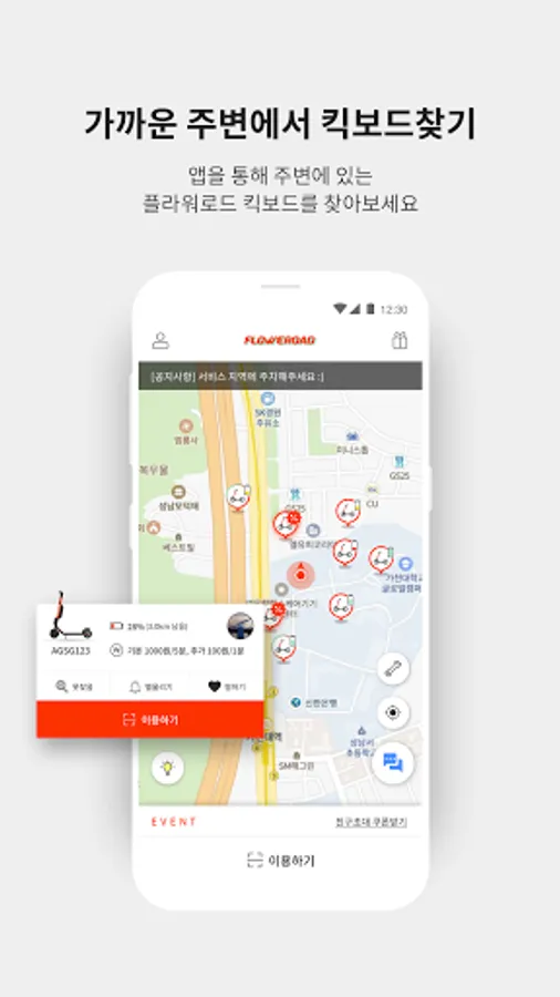 Electric kickboard sharing service Flower Road (Flower Road).