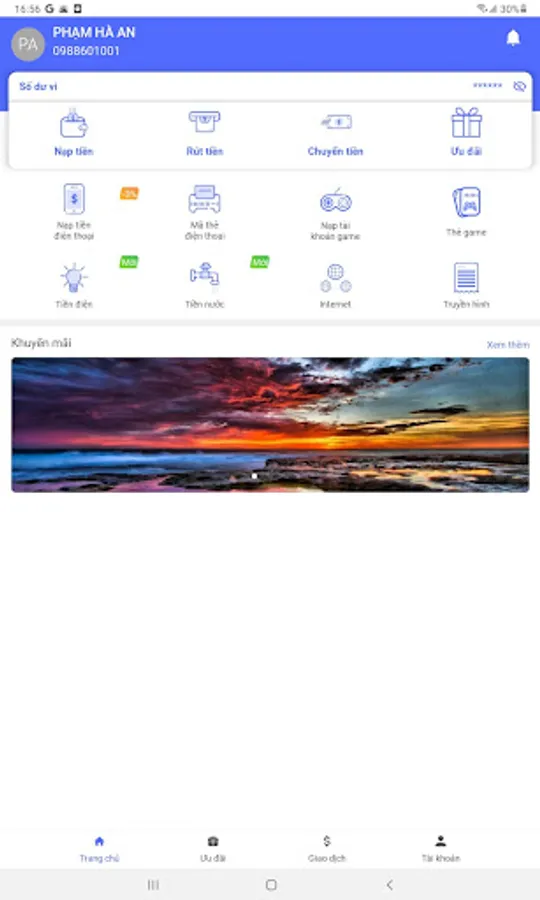 - Free transactions when buying card codes, recharge phones, buy 3G/4G card codes of carriers.