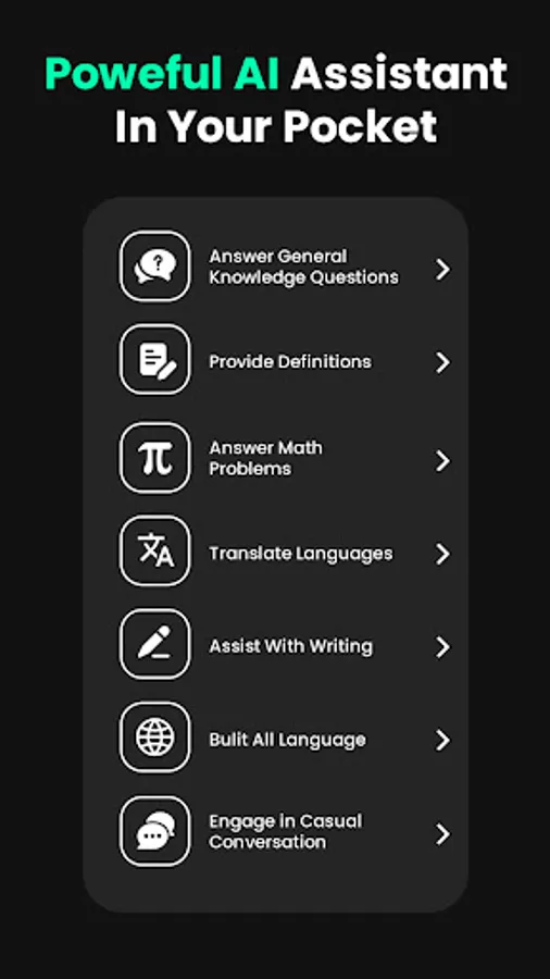 you can chat with the smart AI GPT-3 chatbot by OpenAI to get prompt help with any task. Artificially intelligent AI ChatGTP can act like a personal robot and answer any question in your life.GPT Chatbot AI Assistant, Powered by AI ChatGTP. Experience the power of AI in an amazing and fun way. Easily Get answer to any of your Questions.
