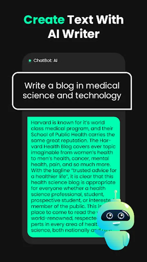 Our ultimate chatbot ai is super useful for text generation and essay writing or email. AI Writer Assistant provides you with an AI chat bot and GPT AI Chatbot text generator that utilizes AI generated algorithms to create perfectly crafted essays and paragraphs. Use the AI bot to start a conversation, learn new information, and discover creative solutions. You can also use the AI essay writer and AI paragraph generator to instantly generate content. With AI Writer Assistant you are sure to find the help you need.