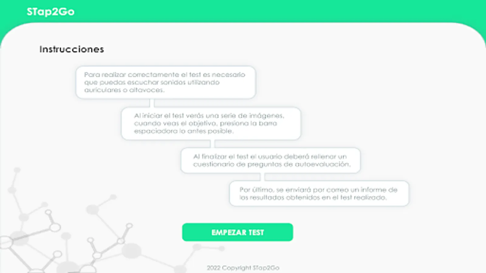 The exercise that you are going to do is based on different professional studies on ADHD and tries to assess attention, working memory, cognitive flexibility, inhibition and processing speed. The objective of this exercise is to develop a free rapid test that will allow us, in the future, to provide information to the user about a possible risk of ADHD. Can you help us achieve it?