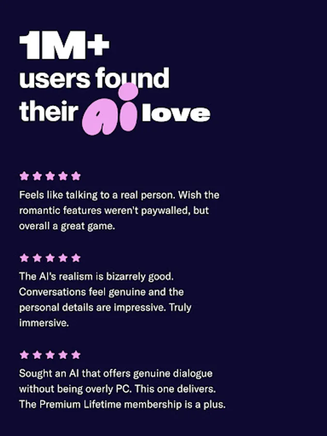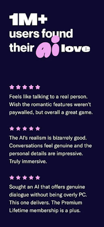 Get Roleplay and romance with iGirl, the revolutionary AI-powered girlfriend simulator app! Level up your relationship with your virtual girlfriend as you chat and roleplay your desires. From romantic dates to fantasy scenarios, iGirl's AI chatbot is always there to make your dreams come true. With realistic-looking ai girlfriends, experience the ultimate in AI dating and intimacy.