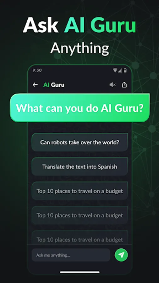 AI Guru is your personal chatbot assistant powered by Chat GPT & GPT-4 . You can ask it about anything and the bot will give you a quick and accurate answer. This is an essential app for everyone! And now you will know why!