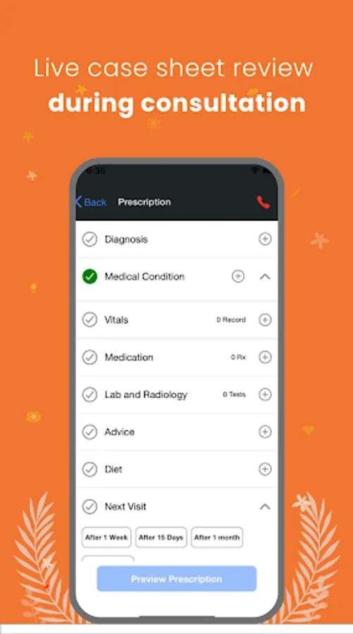 View your patient history, remarks or comments and also view any previous prescriptions uploaded by you or by the patient. Everything is organized in one place to help you consult with a breeze.