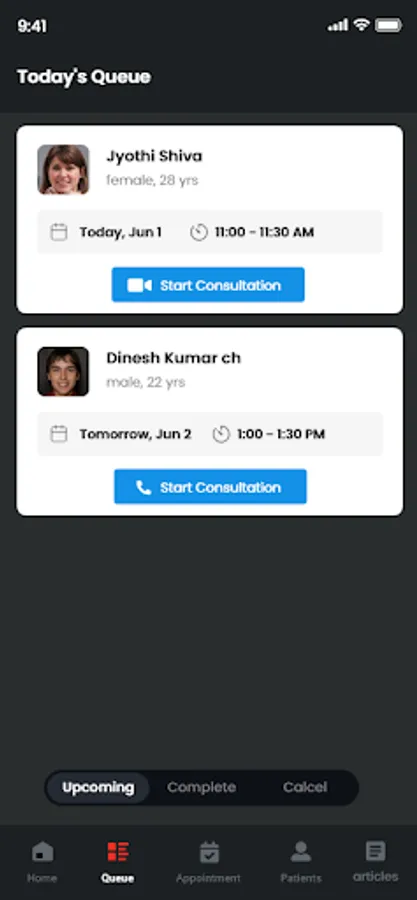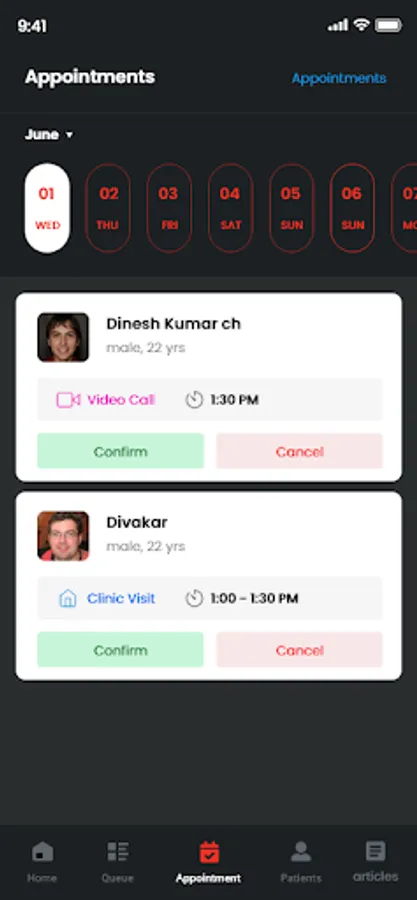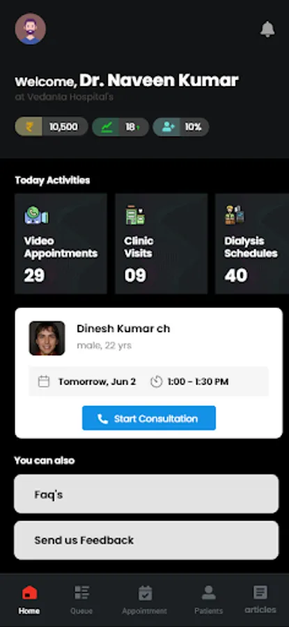 Doctors can set their timings, days and holidays as per their schedule. This allows patients to make appointments easily and ensured doctors are not disturbed when they are not available.