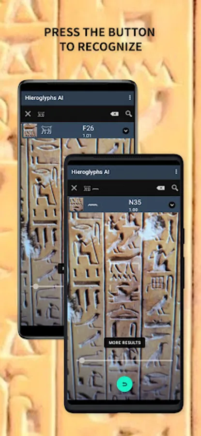 Camera Usage: Simply position the viewfinder over the hieroglyph you want to recognize. Adjust the zoom if needed or adjust the distance between your phone and the object to ensure the hieroglyph fits within the viewfinder's frame. Then, tap the camera button located at the bottom of the screen.