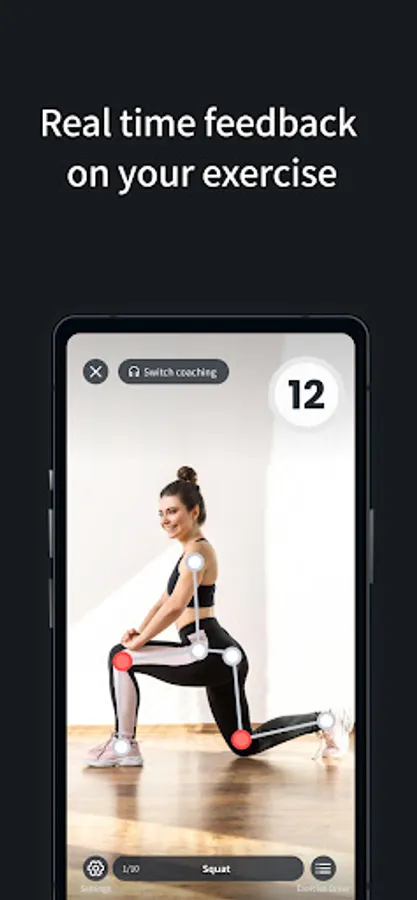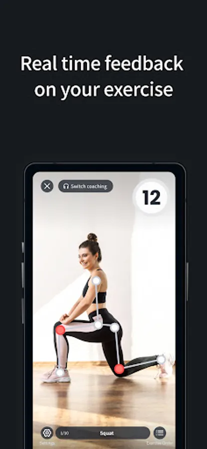 number of exercises and total workout time, but also on your form accuracy and coaching points to focus on, based on key points of the exercise.You can check daily, weekly, and monthly exercise records.