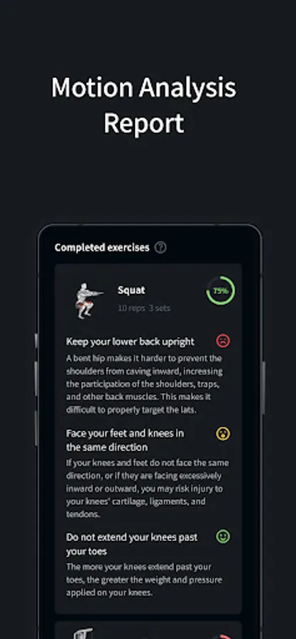2. Motion analysis and exercise historyExercise form analysis reports can be saved.Reports not only provide information on the