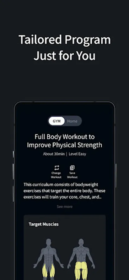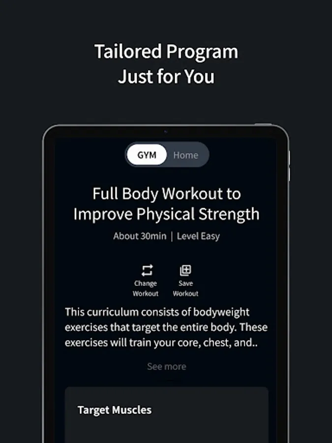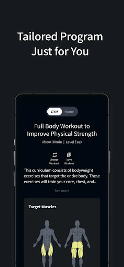 4. Personalized workout recommendationsOptimal workouts recommended based on exercise purpose, exercise level, and physical condition.Exercise at home or at the gym, wherever it is most suitable for you.Check which muscles are targeted whenever you complete an exercise.