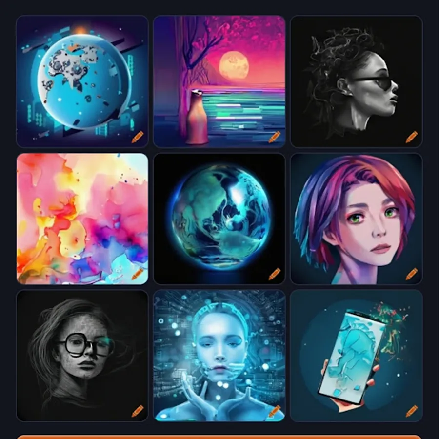 AI Art Generator provides you with a variety of inspirations to keep your idas flowing! Whether you want to create vibrant artwork or something dark and crazy, AI Art Generator has a collection of great artwork for you.