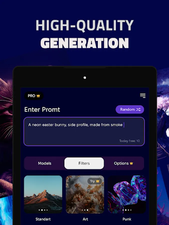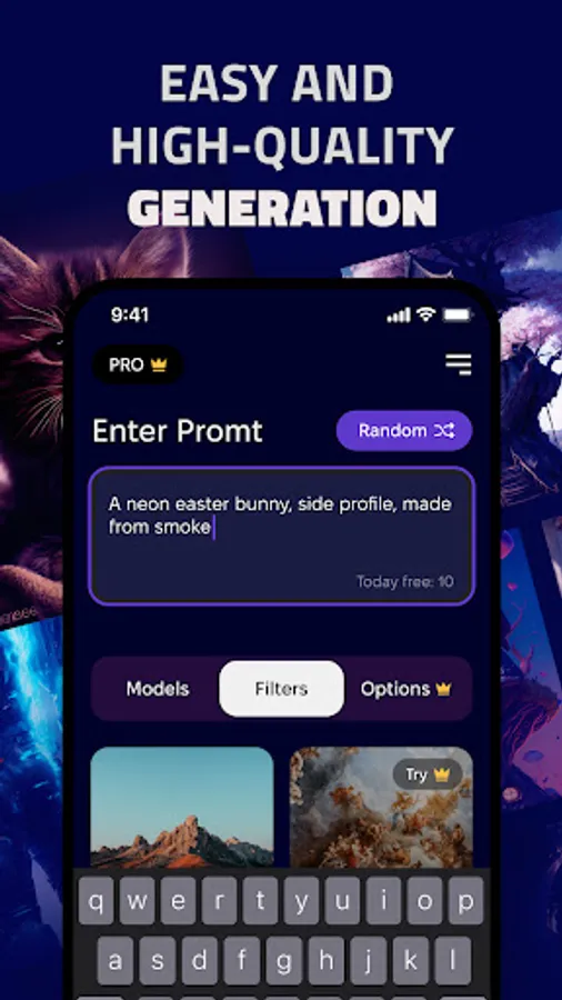 Looking for an easy and fun AI tool to create beautiful digital art on your mobile device? Look no further than Imgit! Our app uses the latest artificial intelligence technology to turn your ideas into mesmerizing artworks in just a few seconds.