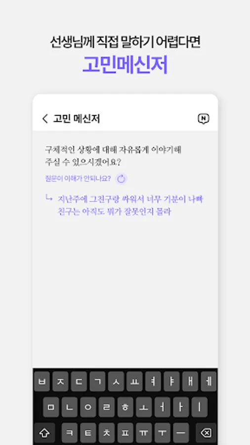 • Through worry messenger, you can deeply explore and specify your concerns and deliver them to the teacher.