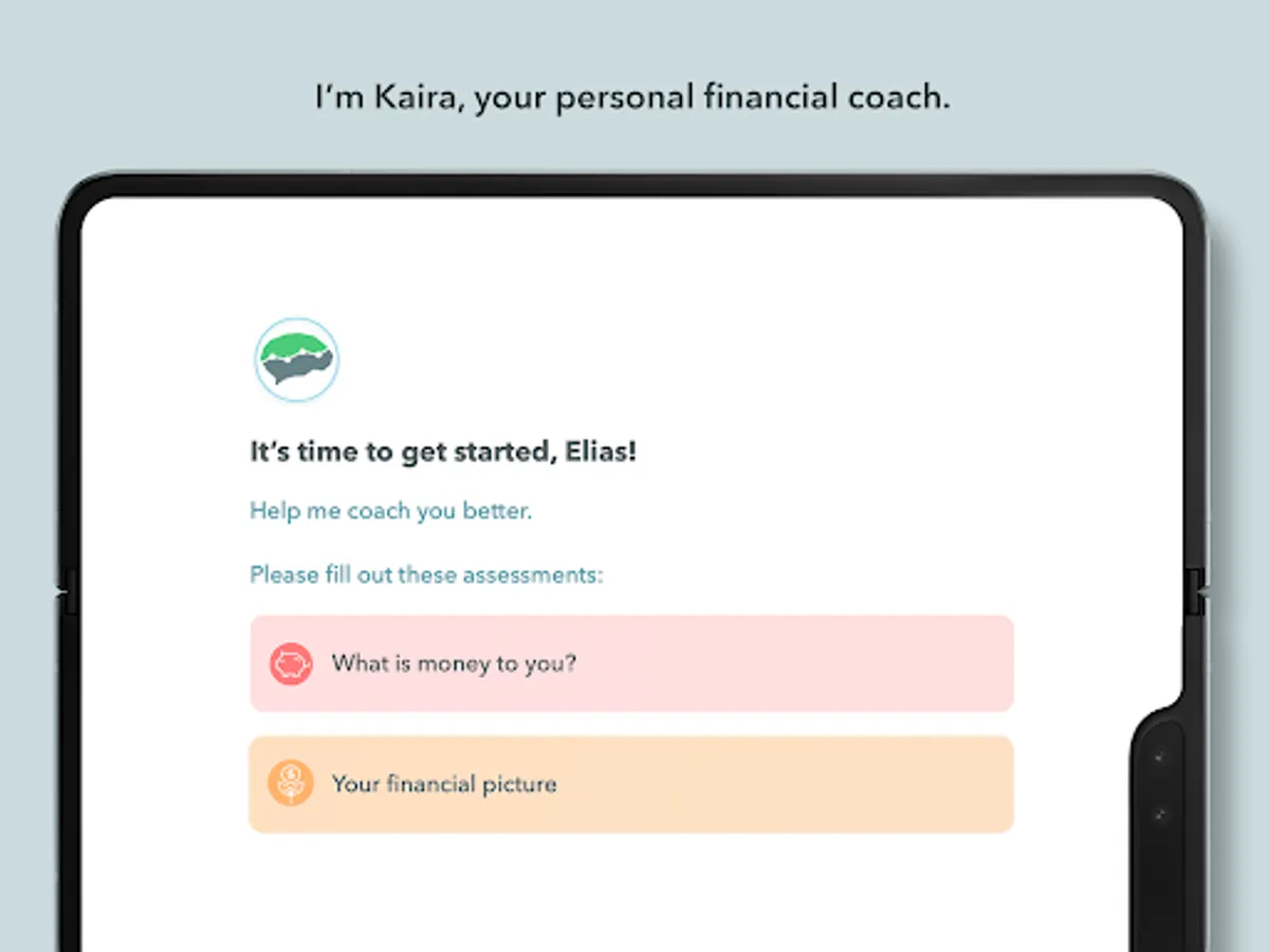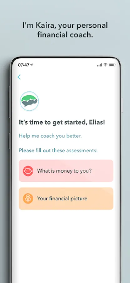 I'm Kaira, your personal financial coach. I take into account what money means to you. And I help you become aware of your financial behaviours. Together, we'll achieve your well-being through financial health and a sense of calm about your money.