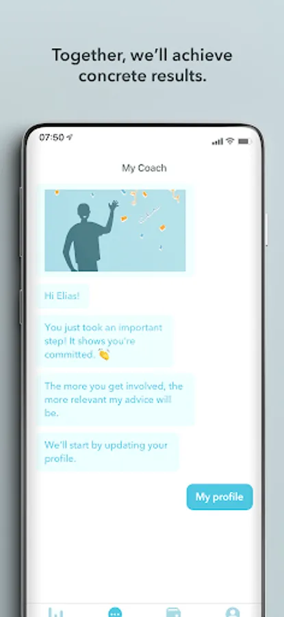 The app also tracks the goals you set with your coach. A powerful feature to help you achieve your goals.