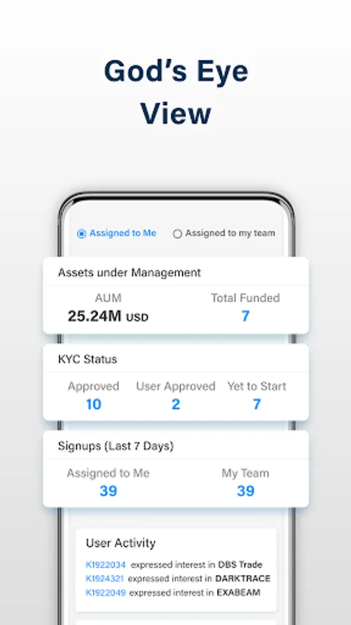 Onboard, manage, and communicate with clients. No matter where you are. You can do KYC for your clients, send them notifications, maintain notes, and keep a track of your tasks. It's got CRM features like