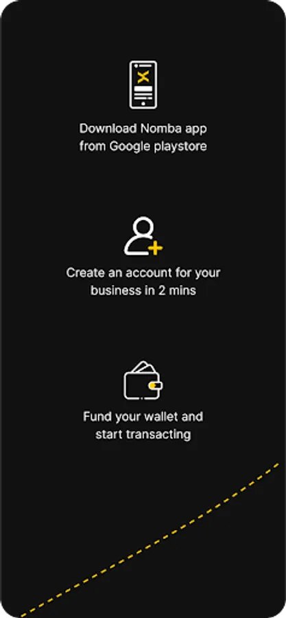 Download the app and set up your account in few minutes. You can credit your account by making a cash transfer from your bank into your Nomba Account.