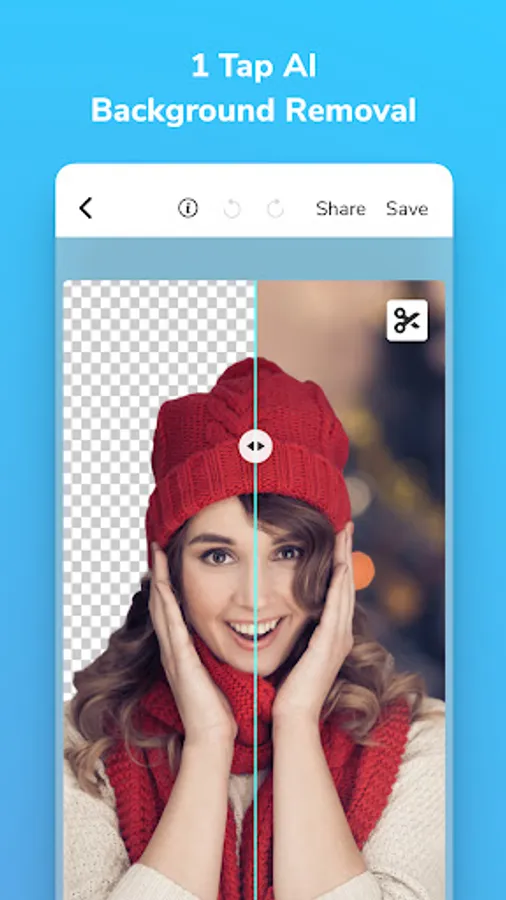 Our AI-powered background removal tool erases background from your photo in just a tap. Get fantastic results without effort.