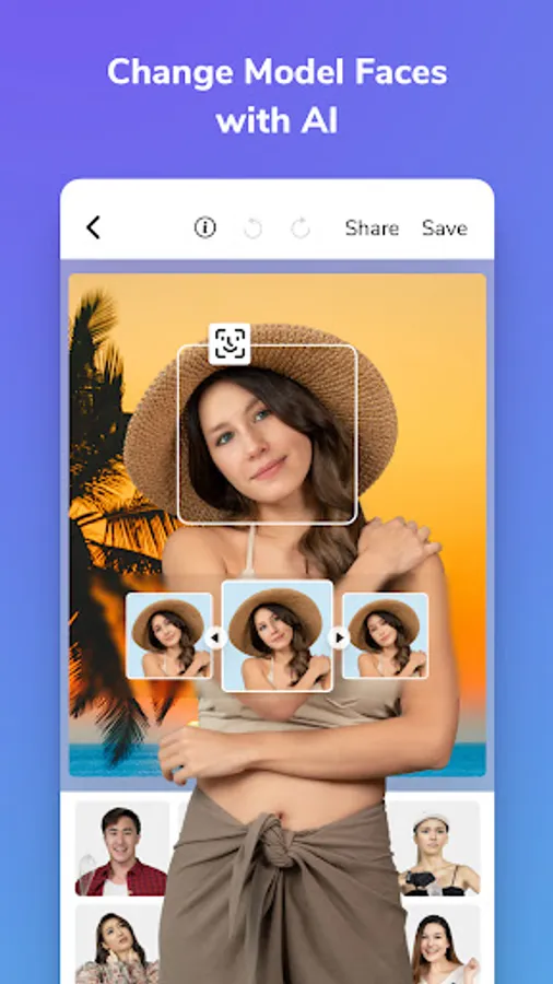 Our proprietary AI can magically change a model’s face to a different look in a single tap. Choose one to captivate your target audience.