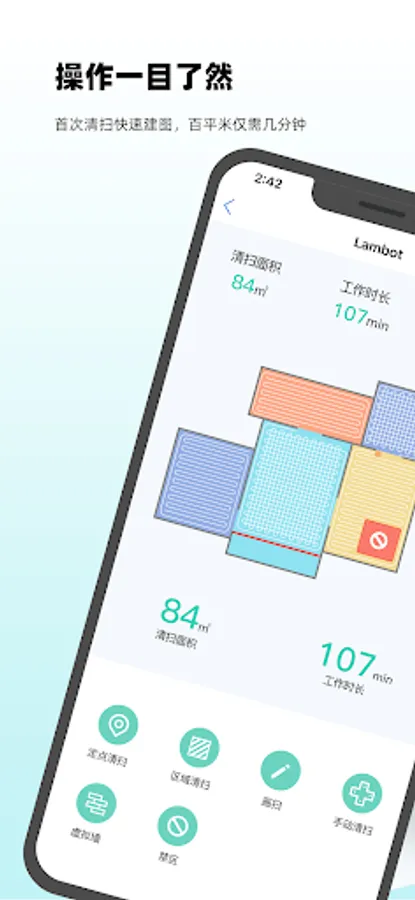 You can set one or more sweeping areas on the map via Lambot mobile application and name for each one. Each area support to set its sweeping times respectively.