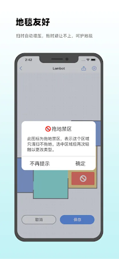 You can add one or more restricted areas on the map via Lambot mobile application. Once you add the areas successfully, Lambot will not enter those areas during sweeping and the restricted areas will be saved for future usage, so you don’t need to set it repeatedly.