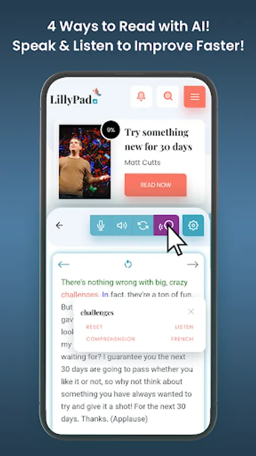 Reading is known as the most effective way to improve any language you want to dramatically improve, and LillyPad is here to support your learning journey.