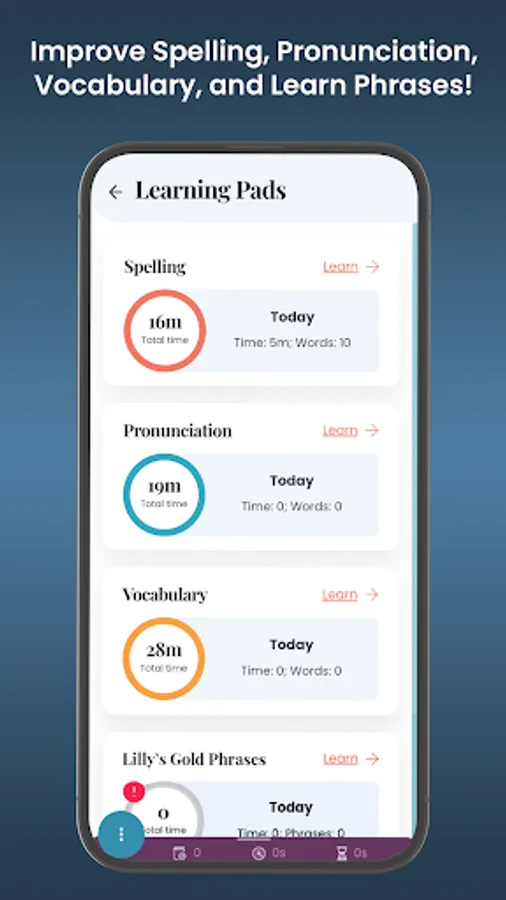 LillyPad also maximizes your progress by incorporating a wide array of innovative English learning modules, providing learners with immense value. Expand your word knowledge and acquire new English expressions through our interactive vocabulary builder or Lilly’s Gold phrases where you can learn hundreds of new English phrases or write your own!
