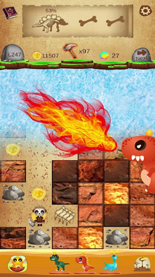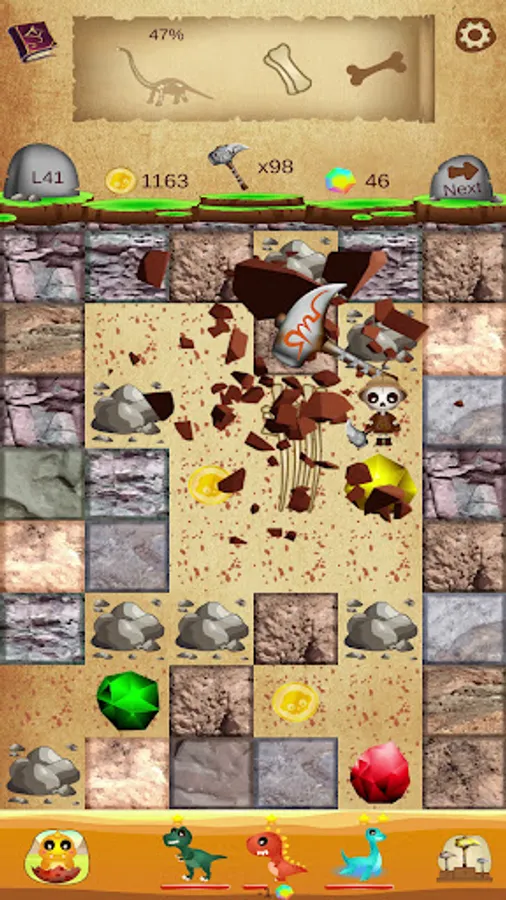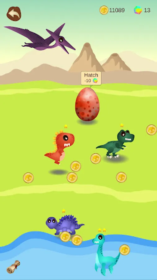 Besides, there are dinosaur eggs along the way. You can hatch them to live baby dinosaurs with powerful gems collected.